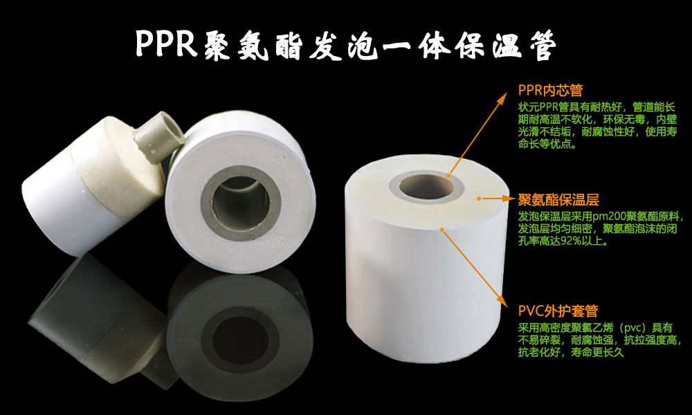 新型PPR保溫管采用聯(lián)塑PPR熱水內(nèi)芯管+聚氨酯發(fā)泡保溫層+PVC(PE)外套保護(hù)層,三層緊密閉合,中間無縫隙、無空氣層,保溫效果極優(yōu)。
